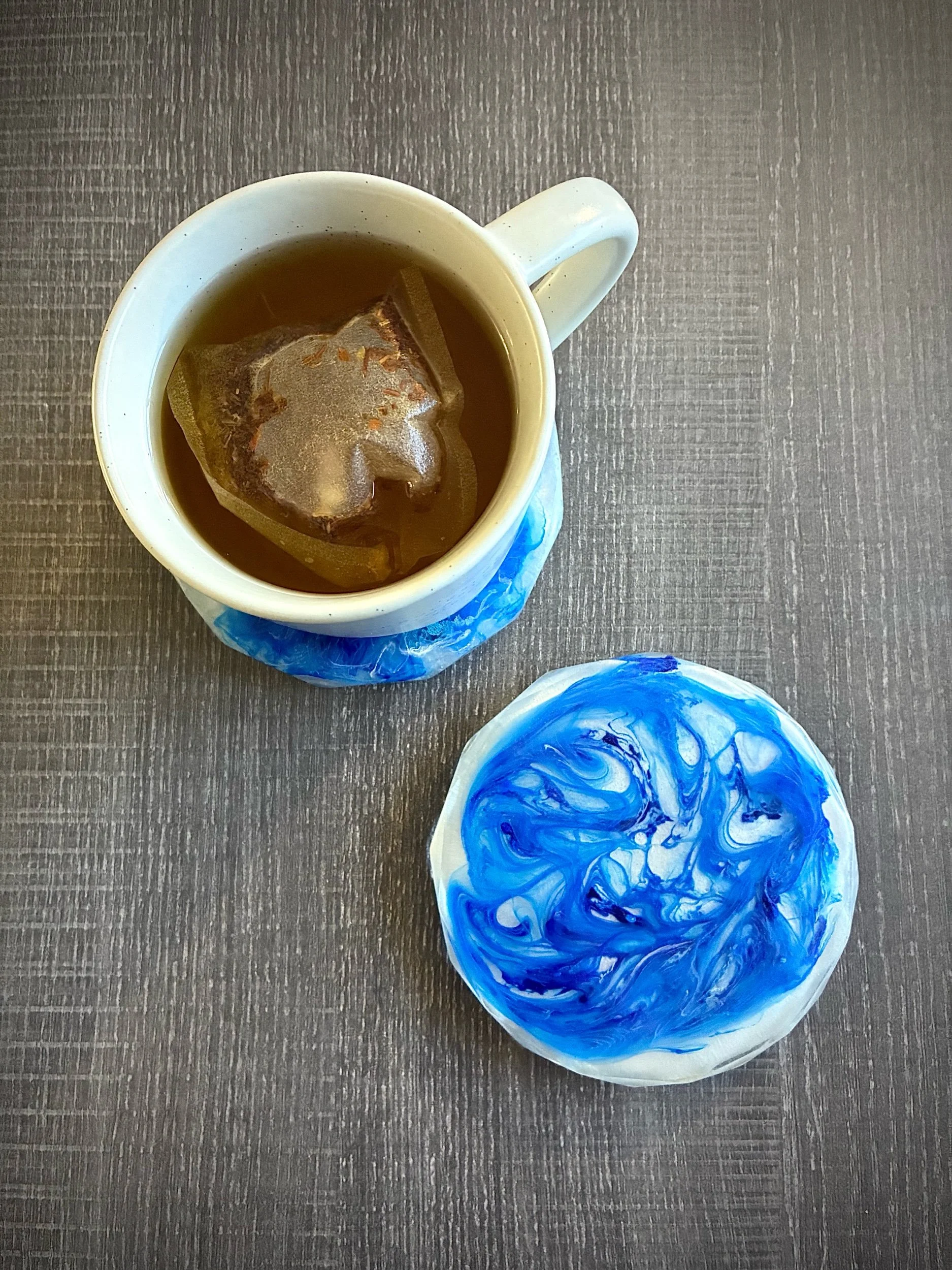 Deep ocean Royal blue inks swirled into white give these coaster real depth and interest. They would enhance any decor. Made large enough for oversized mugs and cups. Protect your furniture in the most beautiful way!